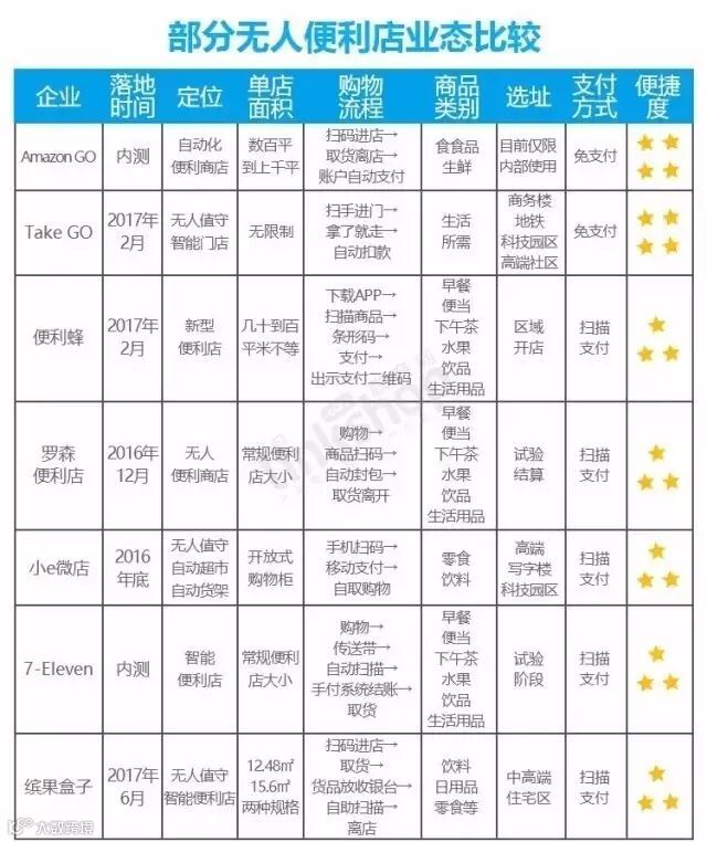 整体而言,像 7-11、罗森这样的国际巨头,在无人零售店领域的布局并不激进,这恐怕与其根深蒂固的传统企业基因有较大的关系,技术不是他们的强项,像亚马逊、阿里巴巴这样有互联网血统的企业则相对激进些,不管怎样,技术在下一轮的零售行业较量中将扮演重要角色。