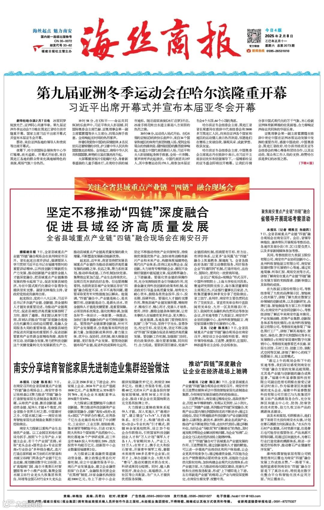 本报讯(记者傅雅兰朱晓西)7日,全省县域重点产业链“四链”融合现场会在南安召开。会后,省领导林瑞良、康涛带队开展现场考察活动,各地市及部分县(市、区)主要负责人以及多家新闻媒体参加考察。