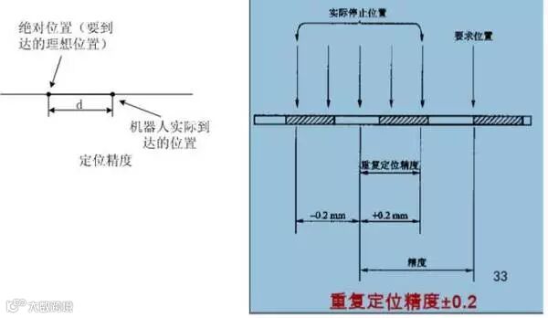 重复性或重复定位精度:指机器人重复到达某一目标位置的差异程度。或在相同的位置指令下,机器人连 续重复若干次其位置的分散情况。它是衡量一列误差值的密集程度,即重复度。