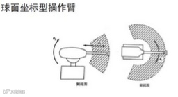 特点:中心支架附近的工作范围大,两个转动驱动装置容易密封,覆盖工作空间较大。但该坐标复杂, 难于控制,且直线驱动装置存在密封的问题。