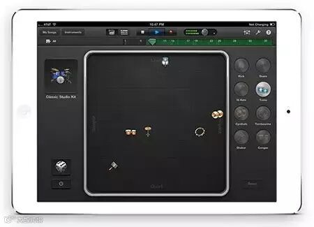 苹果官方出的音乐制作 APP,里面大量的可视化处理令创作音乐成了几乎每个人都可以轻松上手的事情。图例是进入Smart Drum后的操作界面。加入声音的反馈,信息不仅可视,更是“可听”。
