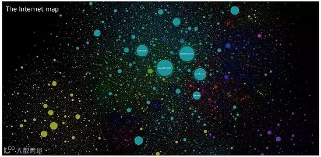 The Internet Map : 将全球网站以星系的形式表现,流量越大,表示圆点越大,颜色代表不同国家。