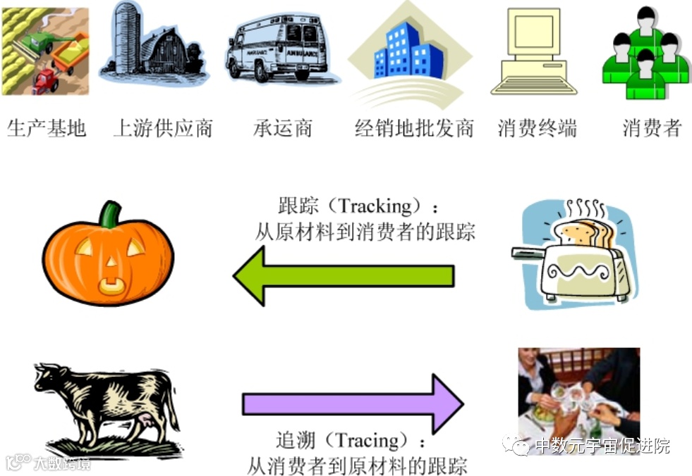 追溯是指从供应链下游至上游识别一个特定的单元或一批产品来源的能力,即通过记录标识的方法回溯某个实体来历、用途和位置的能力。