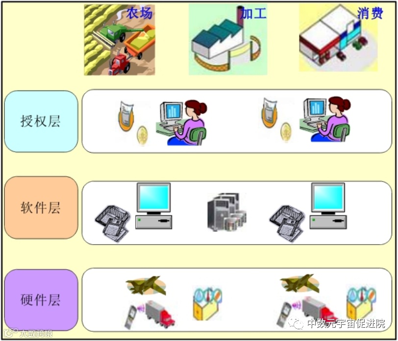 食品安全可追溯系统分为3个层次,即硬件层、软件层、授权层,如图4-63所示。