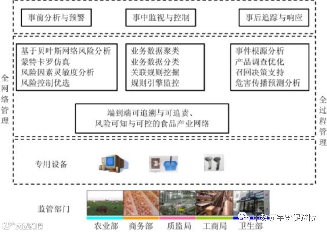 食品安全可追溯系统的目标是提供“全网络、全过程”的食品安全解决方案,较好地实现事前分析与预警、事中监视与控制、事后追踪与响应,如图4-62所示。