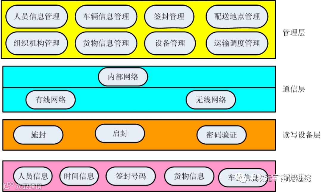 标识层由电子签封构成,它记录每次配送的详细信息,包括驾驶和押送人员信息、出发和抵达时间、签封号码信息,以及货物种类和配送车辆信息。