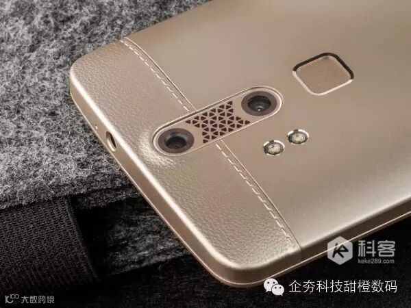 从图上可看到,AXON天机手机搭载了两个后置摄像头和两个双色温闪光灯,双摄像头仿照人类视网膜呈像原理,主摄像头为1300万像素的索尼IMX214摄像头,拥有F1.0超大光圈,副摄像头为200万像素的OmniVision摄像头,单反级别的双ISP,在弱光环境下也能有出色的表现。AXON天机手机机身背面还装备了指纹识别器。