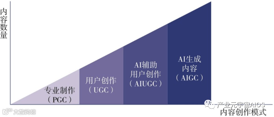 内容创作的模式不断变化,从专业生产内容(PGC)、用户生产内容(UGC)、AI辅助用户生产内容(AIUGC)到生成内容(AIGC)(图1-8)。