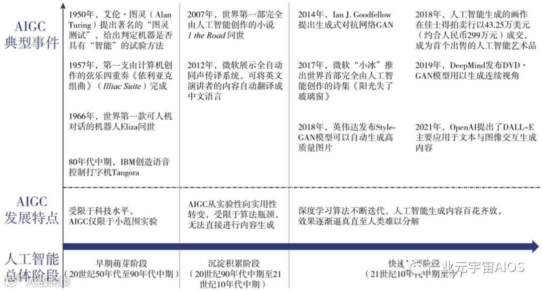 图1-2 AIGC发展三个阶段及重要事件(资料来源:中国信息通信研究院)
