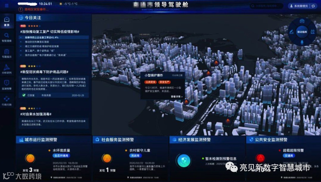 数字政府、城市大脑、一网统管、城市生命线、领导驾驶舱是对新型智慧城市建设理念的一种新诠释;