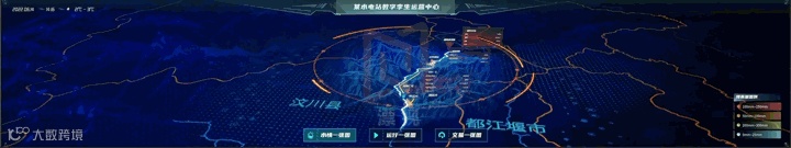 场景主要展示对应区域雨水情信息以及水电站各水工建筑组成部分的水位、流量、水头、水势等信息。通过POI点位辅以弹窗进行数据信息展示,点击单个POI 点位可以拉近镜头,查看实景效果。