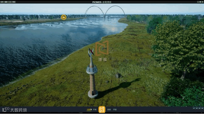 灾害推演:经过精细测报得到的灾害预警信息,在孪生场景中以三维地形和不同水位模拟灾害行为的时空变化及水体形态,实时动态展现流域变化过程以及灾害对周边环境所带来的影响,直观展示不同时刻重要点位的水位信息和洪水淹没情况,为防洪救灾提供重要的决策依据。
