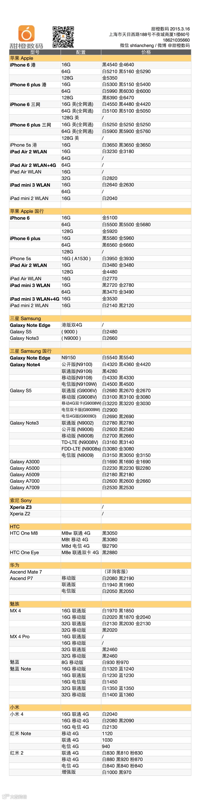 iPhone 6 及 plus 的港版方面非常稳定,只有部分白色款因为需求看涨出现了缺货,三网通美版的 iPhone 6 稳定,iPhone 6 plus 有明显降幅,国行方面没有变化;三星各款在这个周末走势平稳,国内品牌的各款旗舰机、流行机也没有大的变化。
