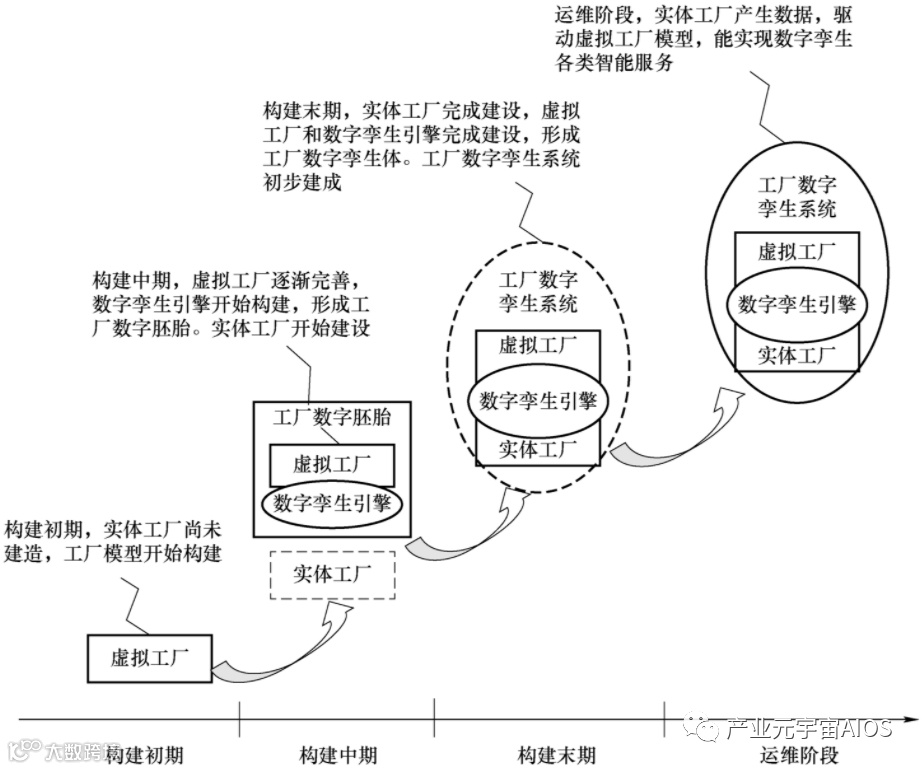 因此,工厂数字孪生系统的实施也包括:实体工厂的实现、虚拟工厂的建设、数字孪生引擎的构建和孪生服务的实现,以及相应的应用系统开发。