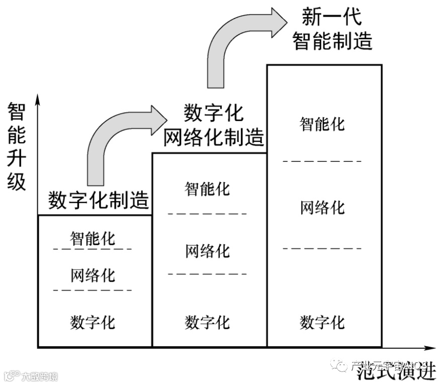 需要说明的是,数字化制造是智能制造的基础,随着技术发展,其内涵也不断发展,贯穿于智能制造的三个基本范式和全部发展历程。