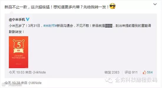 今年1月,小米发布了旗下最新的产品系列小米Note同时也宣布了小米Note将会有顶配版预计在3月底与大家见面,31日正好也是3月底,还是能说得过去。在小米Note普通版的外观基础上,小米Note顶配版将采用2K屏,搭载骁龙810 8核64位处理器处理器,4GB DDR4 RAM & 64GB机身内存。至于有关骁龙810的发热问题,那边的HTC One M9已经处理完毕。相信小米Note顶配版也是可以克服的。