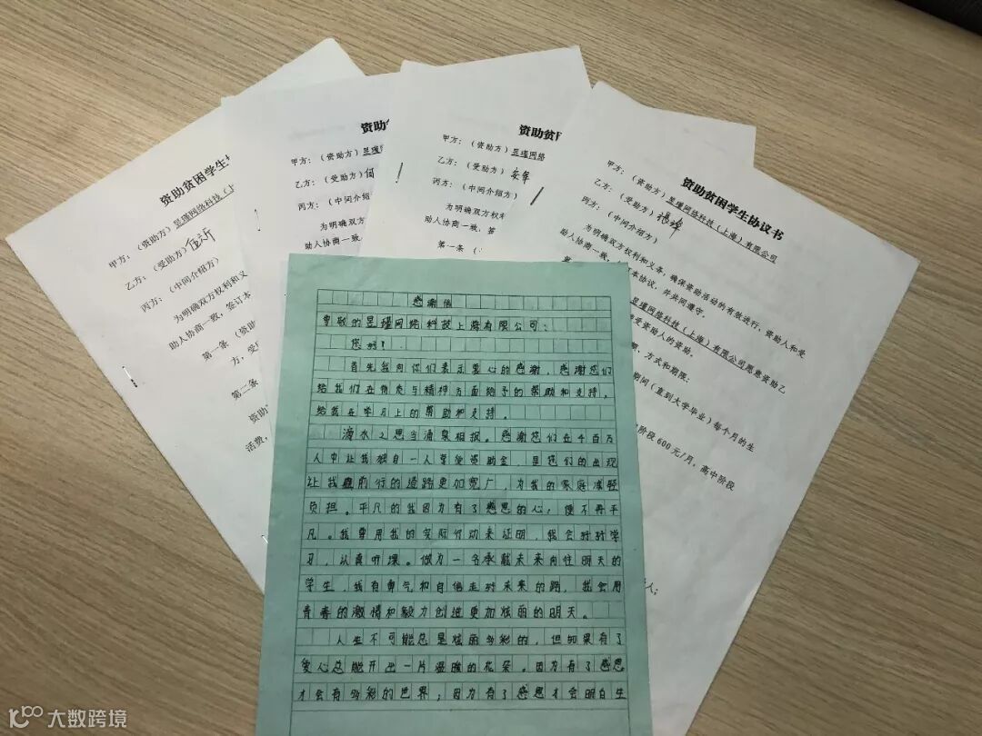 昱瑾将一直资助这四名学生从小学直至大学毕业。