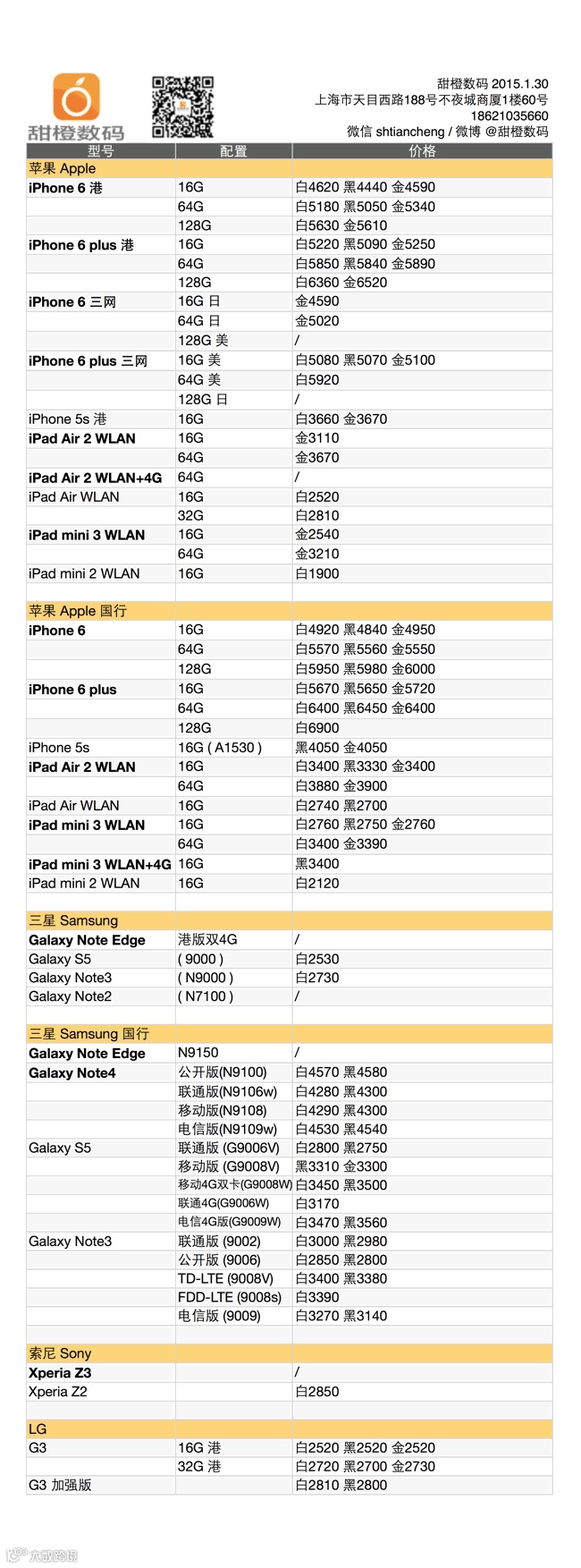 iPhone 6 及 plus 的港版小有反弹,但 128G 版本性价比突出,国行版稳步小幅走低,三网版稳定,美版的机器越来越少了;iPhone 5s 在大需求带动下反弹了 10 元;三星 Galaxy S5 小跌 10 元;iPad Air 1/2 和 iPad mini 2/3 稳定。
