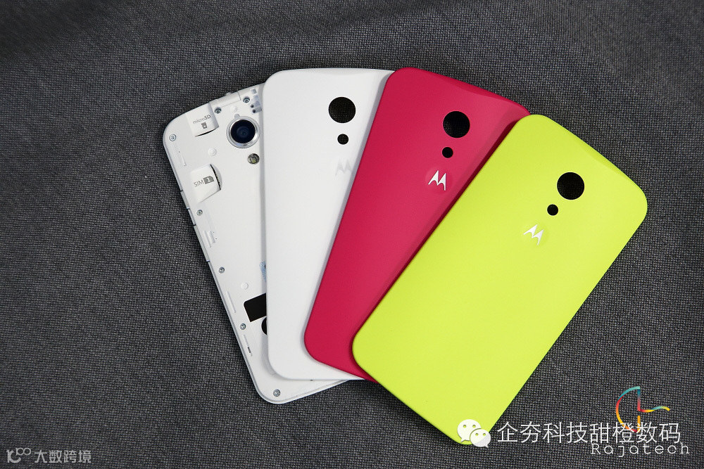 值得一提的是,虽然Moto G没有附送数据线,充电器采用一体式充电器,不能分离。但是Moto还是很厚道的配有耳机,还赠送了两个彩色后壳,同样采用的是防水涂料设计,据称每个壳售价198元哦!