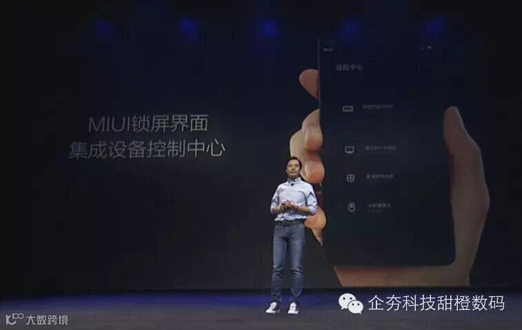 新的MIUI操作系统在锁屏界面集成设备控制中心,让操作与打开相机同样简单。