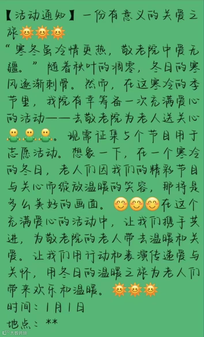 活动部:这里是梦想与行动交织的热土,在这里,您将不仅是活动的策划者与执行者,更是创意与灵感的火花碰撞者。我们期望您不仅热爱公益,更能在文字的世界里游刃有余,用细腻的笔触编织活动的每一个精彩瞬间;同时,若您还具备美术编辑的基础或是精通PS等图像处理软件让您的创意如虎添翼,将活动的视觉呈现提升至全新的高度,共同绘制出属于我们的精彩篇章。