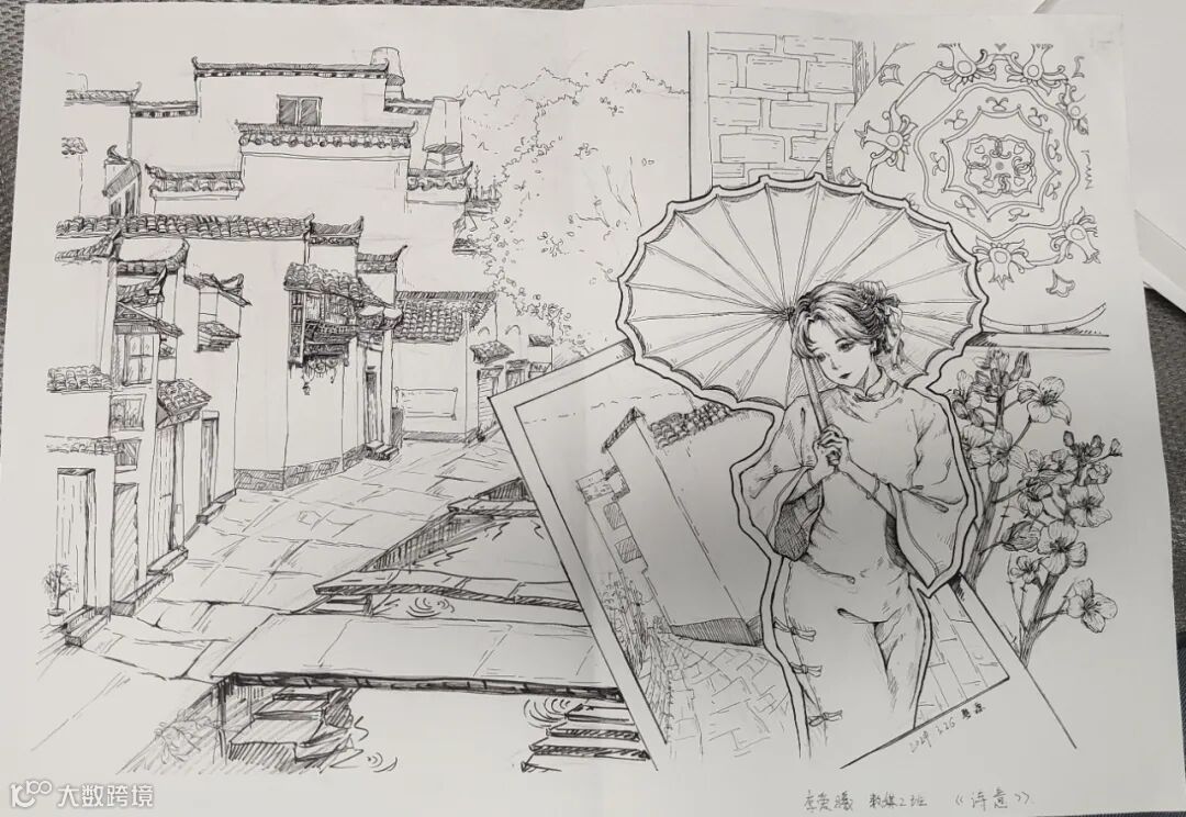 婺源像自然美的画,古村、山水映衬。学生用灵敏笔触抓住春景展现生机,古墙讲过去,溪流奏春曲。每幅作品都是对婺源春的特别表达,是心与自然融合,也见证他们艺术进步!
