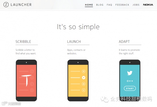 在诺基亚的页面上,这款启动器的主要操作方法就是让用户用手写输入首字母,然后自动搜索手机/平板里面的所有内容,找出对应的,然后一键打开,并且这款启动器还会学习用户的使用习惯,不停地改进自身的搜索结果。