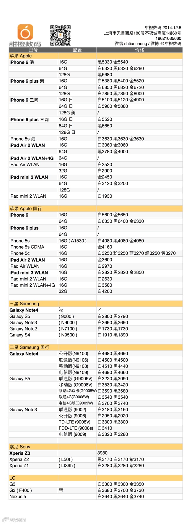 iPhone 6 港版价格坚挺不见松懈,128G 版补货到,但 iPhont 6 plus 港版则有明显降价,今天是出手的好时机;三网版 iPhone 6 及 plus 也有降价,国行款稳定;iPad Air 2 黑色款再到货;三星各款稳定。