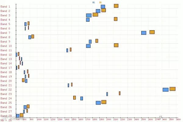 不过,要我说,这点理论上的差异也算不了什么,关键的问题还是在频段的分配上。来看看lte的频段分配情况。