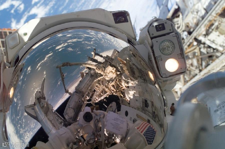 2008年3月11日,美国宇航局的太空探索专家Richard Linnehan登上了奋进号航天飞机。这次为期15天的任务他旅行了600万英里,绕地球250圈,并且进行3次太空行走,舱外活动时间超过了22小时。从头盔的倒影中我们可以看到奋进号航天飞机和国际空间站。
