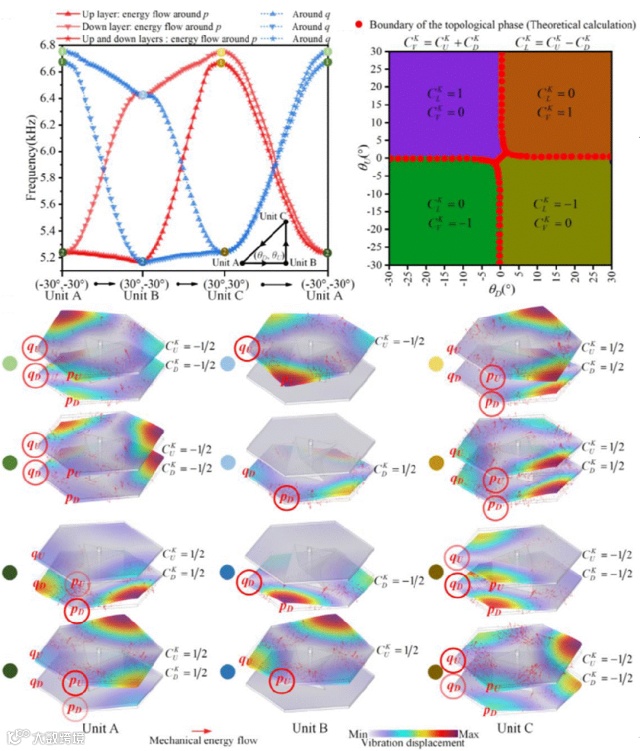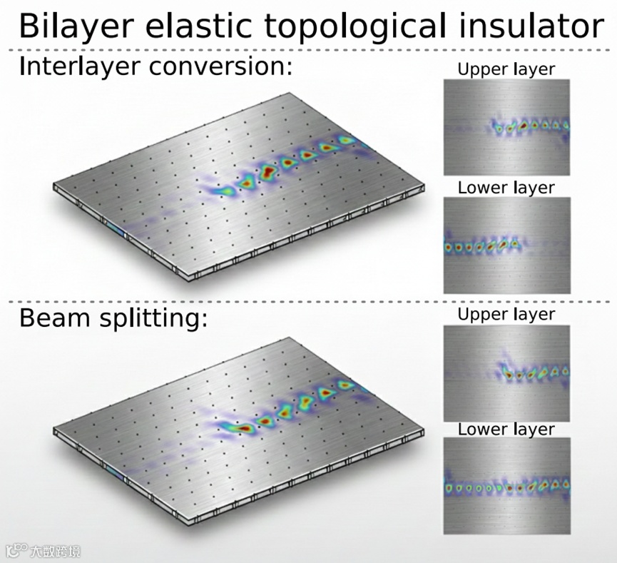 图1:双层弹性波拓扑绝缘体中的层间转换及波束分离特性