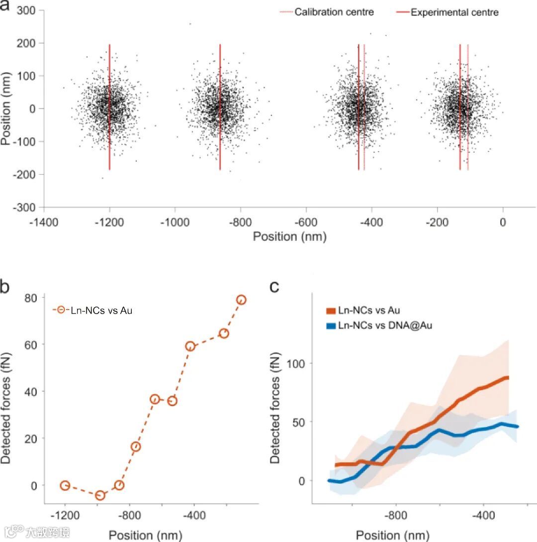 通过将被捕获的纳米粒子逐步靠近修饰DNA的金膜表面,对粒子位置偏移检测直接量化界面相互作用力,展示了光镊在研究生物与功能材料界面作用方面的潜在优势。