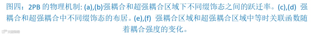 通过计算不同缀饰态之间的跃迁速率,本研究揭示了双极化激元阻塞(2PB)效应的物理起源。在超强耦合区域(例如