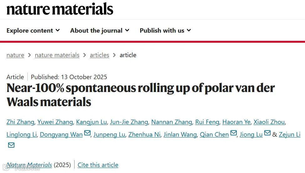 资讯:Nat Mater丨东南大学李泽军教授等团队最新研究报道了实现极性范德华材料近乎100%自发卷起的新方法