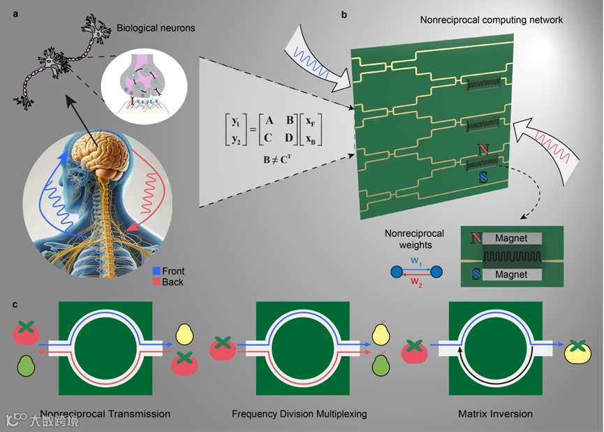 图1:受生物神经系统启发的微波信号非互易计算网络。