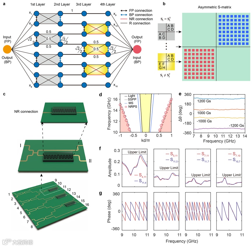 近日,浙江大学信息与电子工程学院王作佳研究员、陈红胜教授团队提出并验证了一种基于人工表面等离激元传输线的非互易神经网络硬件架构,实现了前向与反向传播路径的解耦,为构建高度集成、资源高效的模拟计算提供了新途径。论文以“Nonreciprocal surface plasmonic neural network for decoupled bidirectional analogue computing”为题,发表在《Nature Communications》上。浙江大学信电学院博士生李小萌为第一作者。王作佳研究员与陈红胜教授为论文共同通讯作者,浙江大学为唯一通讯单位。此外,浙江大学博士生杨昊晨、吴恩宗、姚鑫城,浙江大学李鹰研究员、高飞研究员等也为该工作做出了重要贡献。该项目得到国家自然科学基金和浙江省重点研发计划等支持。