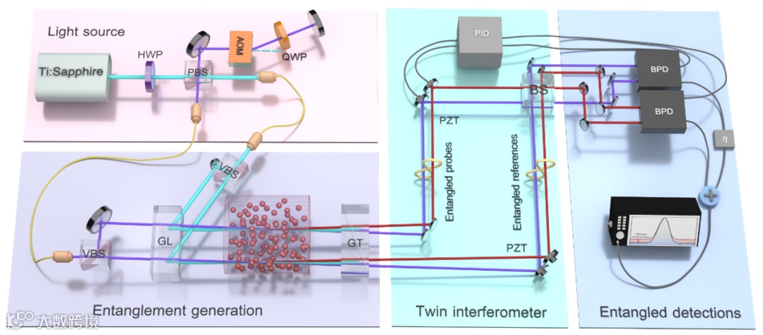 为突破此局限,该团队构建了互为纠缠的“量子孪生干涉仪”架构,取代现有的平衡零拍探测。基于并行配置的双对孪生纠缠光束,建立了量子关联干涉与纠缠探测协同的相位测量新范式,并成功在实验上打破了该团队自己一直保持的量子关联干涉仪相位测量信噪比的国际记录,信噪比再次提升三个数量级。这一成果标志着量子计量学向前迈进的又一里程碑。
