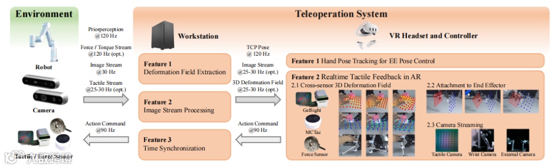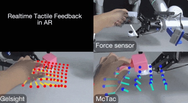 他们首先开发了新型触觉数据采集系统 TactAR,通过 AR 技术提供实时处理的触觉/力反馈。值得关注的是,TactAR 仅需一个成本为 500 美元的消费级 VR 头显(Meta Quest3),这对于大规模推广和应用具有重要意义。