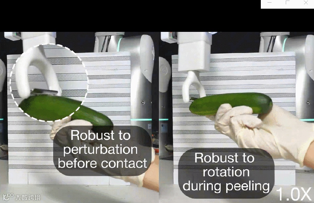 以削黄瓜为例,这一操作需要削皮刀始终紧贴黄瓜表面并施加适当的力,对人类而言轻而易举,但对机器人系统却构成重大挑战——亚毫米级的误差就可能导致整个任务失败。