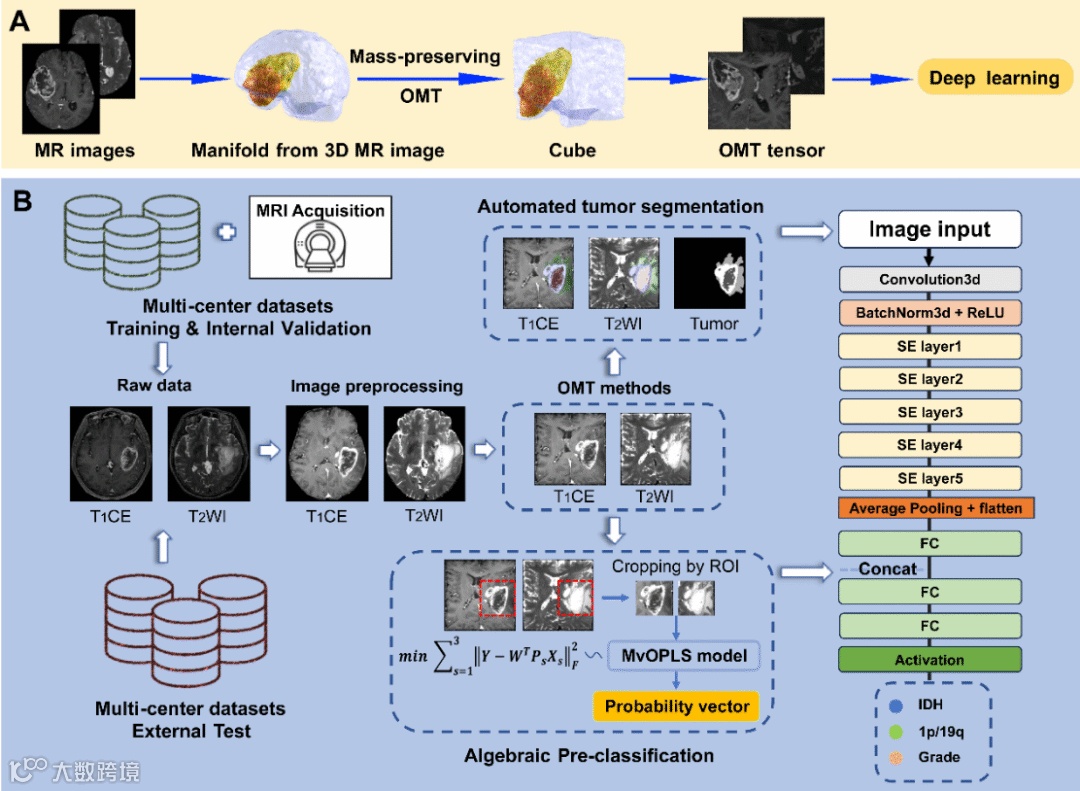 图2 (A) OMT处理脑影像 (B) 研究流程图