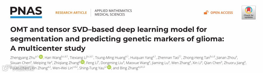 论文题目为“OMT and tensor SVD-based deep learning model for segmentation and predicting genetic markers of glioma: A multicenter study”,2025年7月8日,发表于国际学术期刊PNAS。