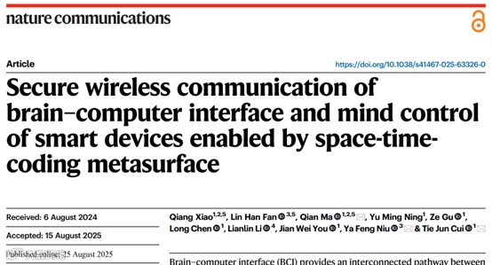 [1] Xiao, Q., Fan, L.H., Ma, Q. et al. Secure wireless communication of brain–computer interface and mind control of smart devices enabled by space-time-coding metasurface. Nat Commun 16, 7914 (2025).