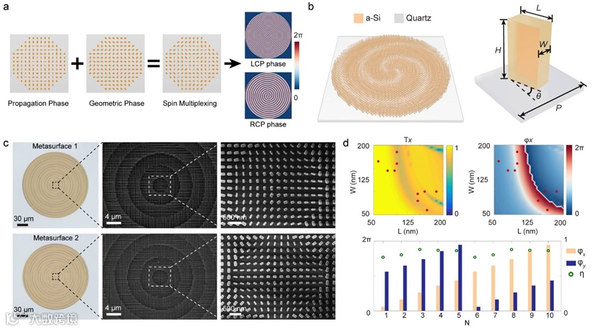 图2. 自旋复用超表面的设计与制备。