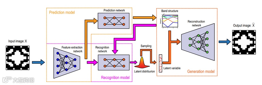 近日,德国汉诺威大学庄晓莹教授团队基于数据驱动方法针对能带结构预测和二维超材料逆向设计提出了一种高效的深度学习设计架构。此架构以条件变分自编码器(Conditional Variational Autoencoder, CVAE)为基础,实现了能带结构预测、拓扑特征提取及结构按需生成三大功能。借助卷积网络(Convolutional neural network, CNN)强大的非线性拟合和图形感知能力,建立了单元拓扑与带隙宽度和中心频率的映射关系,不仅简化了设计目标还为逆向设计结构提供了快速评估条件。其次,采用特征提取模块将原始高维拓扑结构输入压缩至低维设计空间,以提取有效信息并提高计算效率。最后,利用CVAE的采样生成方式,在保证生成结构多样性的同时避免了传统逆向设计时存在的非唯一解问题。此工作为航空、汽车和土木等领域的材料设计带了解决方案,为实现高效按需设计铺平道路。相关工作发表于《npj Artificial Intelligence》上。(潘鑫荣)
