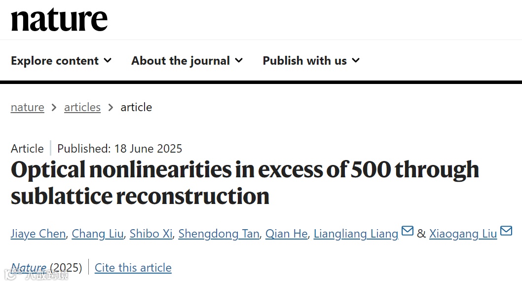 在此背景下,新加坡国立大学刘小钢院士团队联合厦门大学梁亮亮教授团队,在《Nature》 期刊上发表了题为“Optical nonlinearities in excess of 500 through sublattice reconstruction”的突破性研究成果。该研究通过调控纳米颗粒内部的晶格结构,在雪崩离子网络中诱导出显著的晶体场畸变,从而提升离子间的交叉弛豫速率。依托这一结构调控策略,研究团队成功实现了超过500阶的光学非线性响应,刷新了光子雪崩材料的性能纪录,标志着非线性光学材料设计进入以晶体结构工程为核心的新阶段。