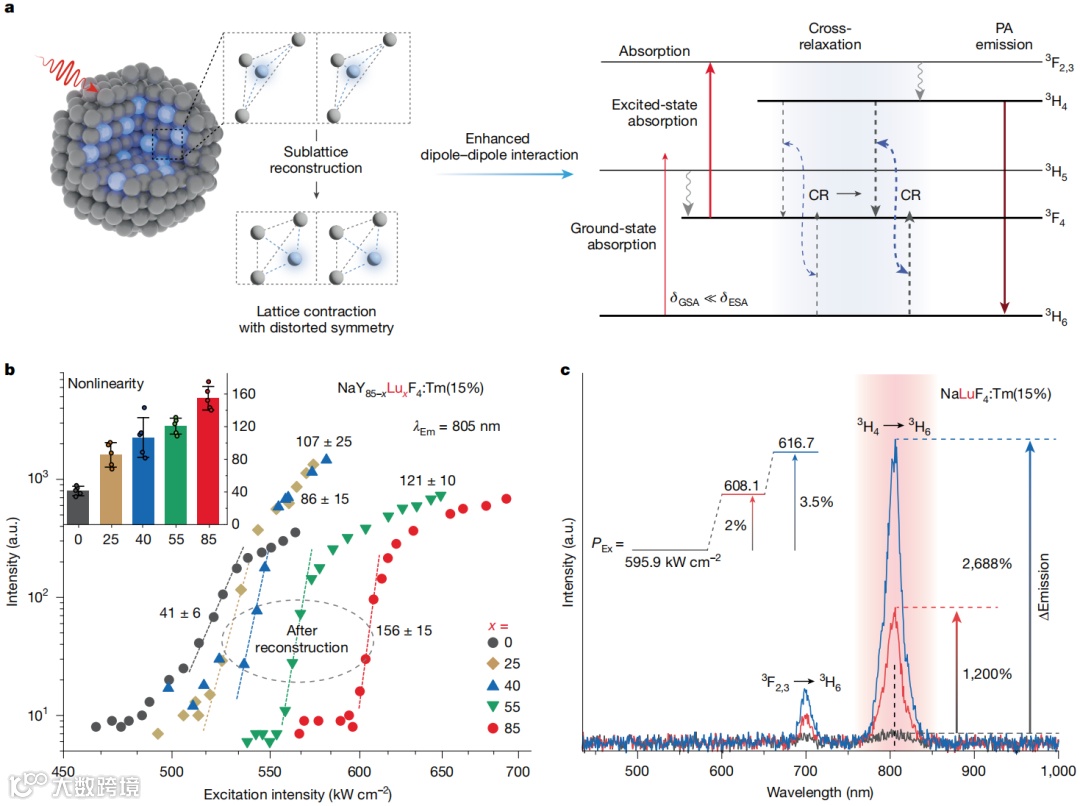 图1: 通过亚晶格重构提升光子雪崩非线性。