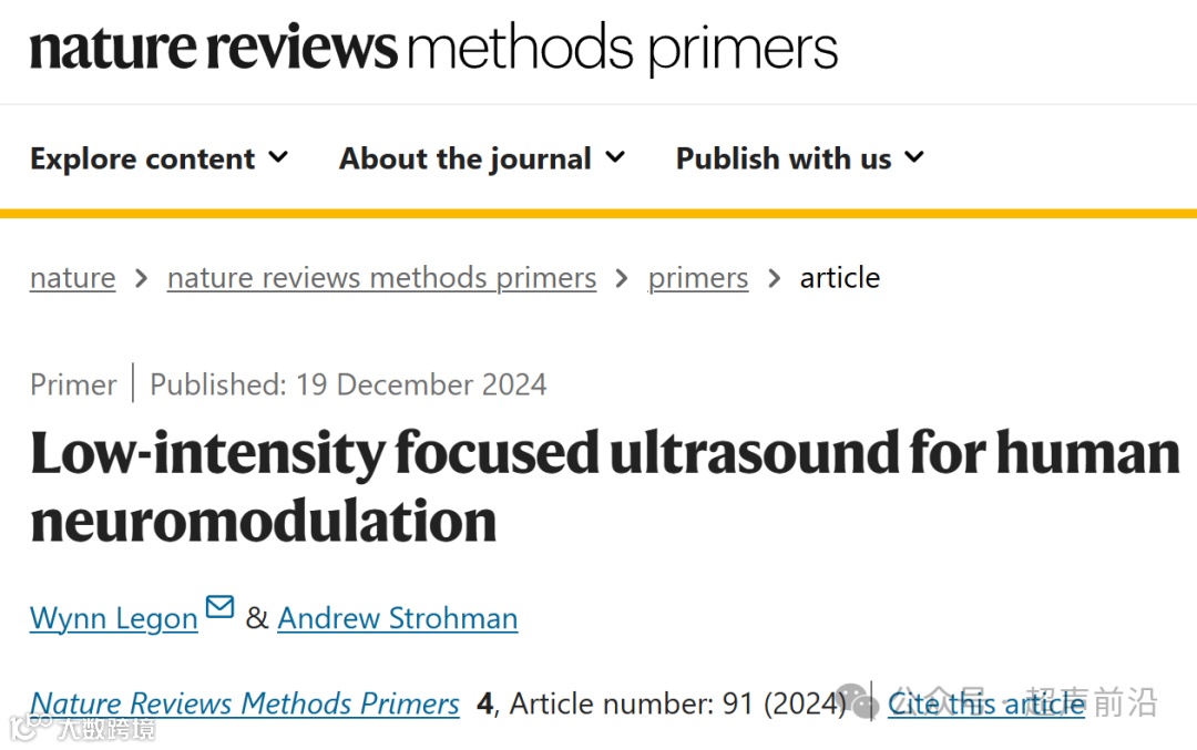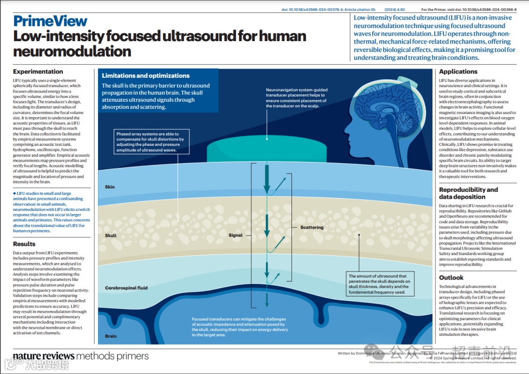 2024.12.19. 弗吉尼亚理工大学研究团队在《Nature Reviews Methods Primers》(IF=50.1)上发表文章 “Low-intensity focused ultrasound for human neuromodulation”,低强度聚焦超声用于人类神经调节的研究综述。