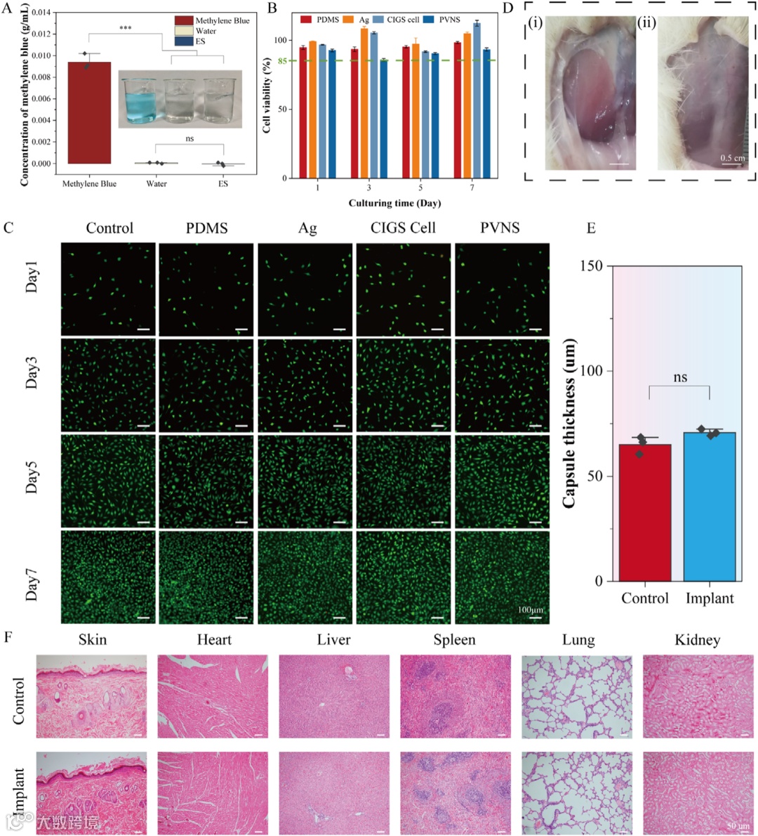 优异的生物相容性:通过严格的体外细胞实验和体内组织相容性测试,证明了PVNS的高生物安全性,无明显细胞毒性,且在体内植入后无炎症反应。