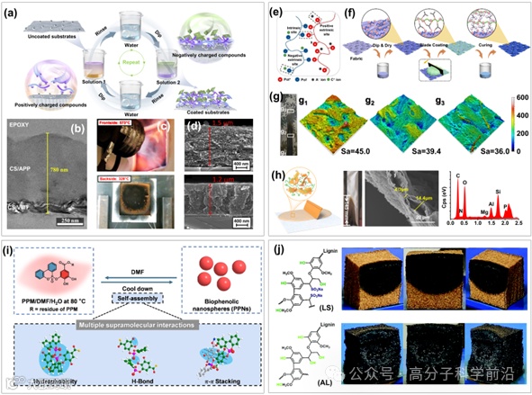 导读:四川大学王玉忠院士和青岛大学徐英俊教授等聚焦纤维素、几丁质/壳聚糖、海藻酸盐和木质素等非食源生物大分子,系统梳理了生物大分子的热解过程、影响因素以及生物阻燃性体系的改性手段、构建途径(主要是磷酰化)。
