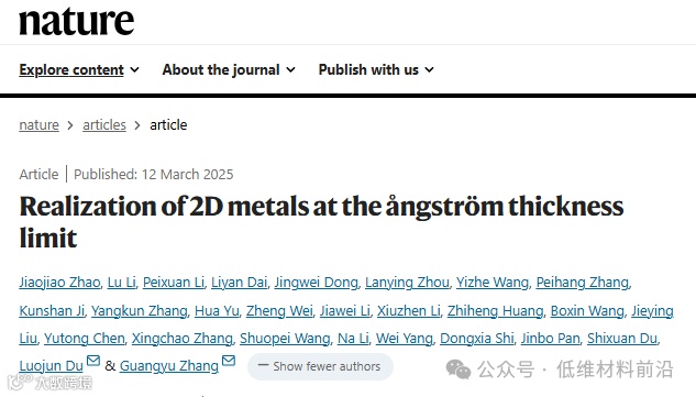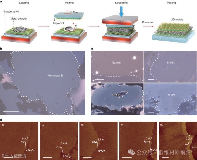 本研究通过提出范德华挤压技术,实现了在埃米极限厚度下普适制备二维金属,为二维金属的制备、研究及其在量子、电子和光子器件中的应用开辟了新的路径。